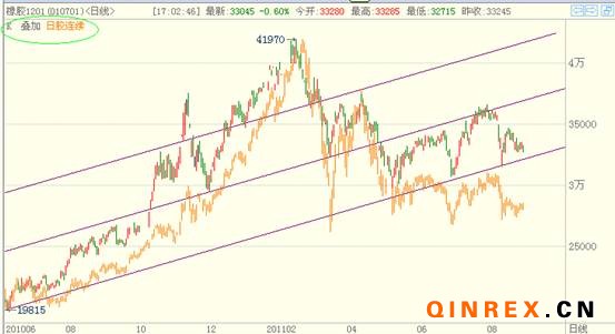 滬膠主力合約RU1201自7月29日完成技術性回抽后,其中期頭肩頂的頂部形態運行基本成立。于8月9日再度上揚,至本周結束,短期的頭肩頂形態已現端倪。但由于時間周期上未能配合,其弱勢格局難改,近期將以振蕩下行的方式展開運行,以空間換時間,一旦向下擊穿31500的區間,則其雙重頭肩頂的頂部形態構筑成功。