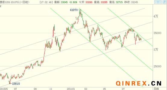 波段操作:價格若回到缺口附近,35000-35500繼教回補空單,止損35800-36000;目標31500-31000;