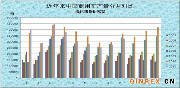 從環(huán)比來看,9月乘用車和商用車均呈現(xiàn)較快增長,但從同比看,乘用車增長(產(chǎn)銷分別為3.52和8.79%),商用車下降(產(chǎn)銷為-10.29和-5.92%),貨車類車型市場低迷明顯拖累了商用車,使之下降趨勢沒有改變。1-9月,乘用車產(chǎn)銷總體增長6%左右,除交叉型乘用車下降10%左右外,其它各類車型均呈一定幅度的增長;而商用車產(chǎn)銷總體分別下降7.37%和4.79%,除客車類車型增長外,貨車類車型在國家宏觀調(diào)控政策影響下,均為負(fù)增長。我們應(yīng)該注意到的是,相對于乘用車來說,商用車輪胎的天然橡膠使用量遠(yuǎn)遠(yuǎn)大于乘用車輪胎的天然橡膠使用量,特別是重型貨車輪胎中天然橡膠的使用量為乘用車輪胎的40倍。因而商用車產(chǎn)銷的總體下降趨勢使得天然橡膠的需求面顯得較為不樂觀。