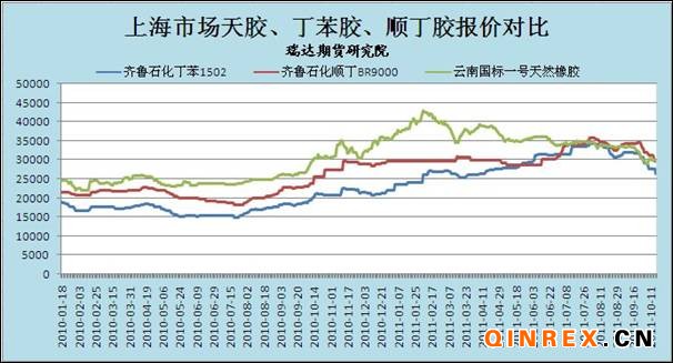 今年上半年,日本大地震導(dǎo)致其多套乙烯生產(chǎn)裝置關(guān)閉,造成全球丁二烯價格飆升,從而使得合成橡膠生產(chǎn)成本的增加,合成橡膠報價持續(xù)上漲。丁二烯價格在7月達(dá)到30000元后,成交量明顯萎縮,價格經(jīng)過長達(dá)7周的高位整理后,在生產(chǎn)商、流通商的雙重拋壓下,終于回落。進(jìn)入九月份,在下游生產(chǎn)商抵觸情緒強(qiáng)烈、天然膠期貨價格逐漸回落、東南亞丁二烯價格逐漸走軟的情況下,丁二烯價格跌勢加快。進(jìn)入十月份,由于主要的丁二烯下游應(yīng)用領(lǐng)域合成橡膠和ABS生產(chǎn)商都在削減產(chǎn)量,亞洲市場丁二烯現(xiàn)貨價格將進(jìn)一步下挫。丁二烯現(xiàn)貨報價的下跌也拖累了合成橡膠報價,截止目前,上海市場順丁膠報價在31000元/噸近,丁苯橡膠在25000-26000元/噸附近,業(yè)界普遍認(rèn)為后期依然存在要大幅下調(diào)的空間,這便對天然橡膠市場構(gòu)成沉重的壓力。
