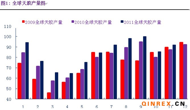 2011年,全球天然橡膠生產(chǎn)國的生產(chǎn)情況相繼都受到過天災(zāi)的影響,首先是年初中國產(chǎn)區(qū)受到旱災(zāi)的影響,開割期推后10天左右; 9月份,東南亞主要產(chǎn)膠國遭遇洪災(zāi),洪水雖未影響主要天膠產(chǎn)區(qū),但影響橡膠的運(yùn)輸,使市場(chǎng)到貨量減少。中國國慶長(zhǎng)假期間海南因長(zhǎng)假期間風(fēng)災(zāi)和大量降雨導(dǎo)致海南中部和西北部產(chǎn)區(qū)生產(chǎn)受損,據(jù)統(tǒng)計(jì)受此影響,海南產(chǎn)區(qū)整體受災(zāi)面積達(dá)10%,全省350萬畝民營(yíng)橡膠受災(zāi)面積140萬畝,成災(zāi)100萬畝,膠苗損失71萬株。加之年初寒潮災(zāi)害,海南全年產(chǎn)量預(yù)計(jì)減少近20%。雖然受到了天災(zāi)的影響,但是今年天膠的產(chǎn)量并未受到影響。截止到2011年年底,天然橡膠生產(chǎn)國聯(lián)盟的天膠產(chǎn)量累計(jì)增長(zhǎng)了7.19%,超出了年初預(yù)計(jì)的6.5%增長(zhǎng)率。