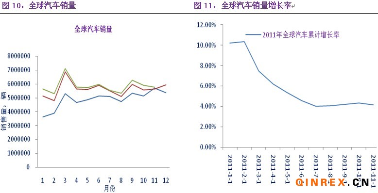 2008年受到金融危機(jī)的影響,國內(nèi)汽車工業(yè)受到嚴(yán)重的沖擊,因此,國內(nèi)在2009年出臺(tái)了多項(xiàng)汽車刺激政策,但截至日期到2011年。汽車政策退出后,國內(nèi)的汽車銷量增長(zhǎng)率開始下滑。2011年年初市場(chǎng)普遍預(yù)期全國汽車銷量將增長(zhǎng)10-15%,但到2011年12月國內(nèi)的汽車銷量累計(jì)只增長(zhǎng)了2.7%。