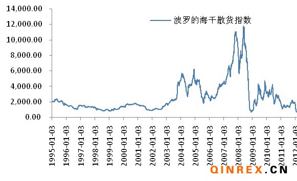 2008年受到金融危機的影響,波羅的海干散貨指數(shù)(BDI指數(shù))跳水,最低為885點,隨后隨著各國救市政策的出臺,2009-2010年5月份,BDI指數(shù)反彈,2011年5月份后又開始挑頭向下,今年一月份創(chuàng)出近20年的新低648點,而2月15日也不過是731點,比2008年金融危機時的最低點885點仍要低154點。BDI指數(shù)的下滑,反映了全球經濟貿易活動的放緩,經濟前景并不樂觀。