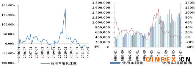 2009 -2010年,中國乘用車銷量進入井噴式增長,2009年的乘用車銷量同比增長52.88%,2010年的乘用車銷量同比增長33.29%。2011年隨著國內汽車振興主要政策的退市,加之國內經過車市經過兩年的快速發(fā)展,基數(shù)較大。2011年中國乘用車市場的增長速度開始放慢,2011年全年的乘用車銷量同比僅增長5.45%,2012年1月份乘用車銷量甚至下滑了24.09%。目前我國千人保有量不足70 輛,部分中西部地區(qū)甚至僅為30輛,增長空間較大,但由于這部分地區(qū)的人均收入短期內難以達到北京、天津以及東部沿海地區(qū)的收入水平,因此短期內難以取代東部地區(qū)成為汽車銷售增長的領頭羊。而東部地區(qū)千人保有量達到50 輛以后,增速逐漸放緩,難以在保持之前對國內汽車總銷量的貢獻率,因此2012年國內汽車銷售量或將保持負增長,經過初步預估大約在1800萬輛左右。而商用車的下滑速度更快,接近金融危機時刻的下滑速度,反映了目前經濟仍在谷底。