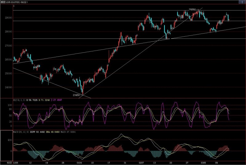 觀察明日天膠價格的開盤位置,小幅低開的預期下,注意在29000價位的走勢,遇阻回落,可嘗試背靠29000,逢高沽空,但止損位的設定應適當放小。
