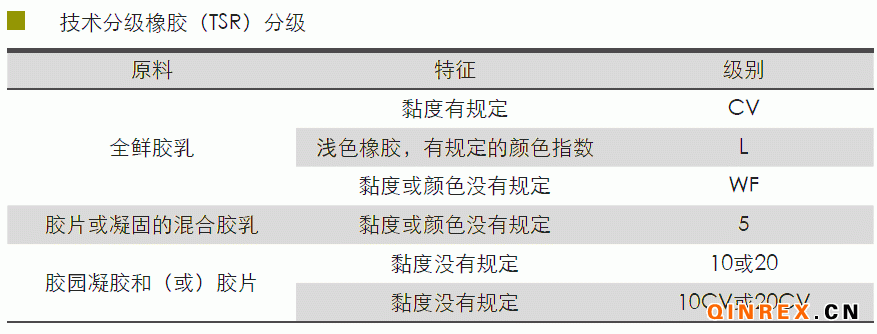 顆粒較(即標(biāo)準(zhǔn)膠SMR,也稱技術(shù)分級(jí)橡膠TSR)是按國(guó)際上統(tǒng)一的理化效 能、指標(biāo)來(lái)分級(jí)的,這些理化性能包括雜質(zhì)含量、塑性初值、塑性保持率、氮含 量、揮發(fā)分含量、灰分含量及色澤指數(shù)等,其中以雜質(zhì)含量為主導(dǎo)性指標(biāo)。根據(jù) 國(guó)標(biāo)GB/T8081-2008,技術(shù)分級(jí)橡膠(TSR)的分級(jí)應(yīng)根據(jù)TSR的性能和生產(chǎn)TSR 所用的原料而定(見(jiàn)下表)。
