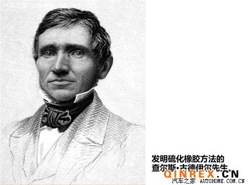 1868年,美國(guó)人查爾斯 古德伊爾(Charles Goodyear)發(fā)明硫化橡膠的方法,使橡膠能運(yùn)用在輪胎上,古德伊爾先生雖取得專利但并未因此致富(1898年美國(guó)一家新成立的輪胎公司為了紀(jì)念他的貢獻(xiàn),把公司命名為固特異輪胎公司)。