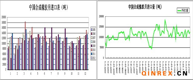 合成橡膠:5月份中國進口合成橡膠126535噸,環(huán)比增長7%,同比增長4%。1~5月份累計進口合成橡膠604384噸,同比下降3%。盡管月度進口量出現(xiàn)增長,但受歐美出口市場疲軟的影響,下游輪胎行情需求仍然低迷,目前國內輪胎企業(yè)開工率僅五六成,輪胎和合成橡膠企業(yè)都已建立了大量的庫存。為應對庫存過剩的困境,國內合成橡膠企業(yè)已經關閉了裝置或削減了裝置開工率水平。
