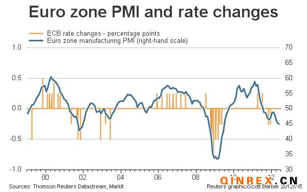 最新出爐的一系列采購(gòu)經(jīng)理人指數(shù)(PMI)并未改變相關(guān)預(yù)期,即歐洲央行(ECB)周四將把指標(biāo)利率調(diào)降至紀(jì)錄新低,英國(guó)央行可能再度啟動(dòng)印鈔機(jī)以購(gòu)買債券.