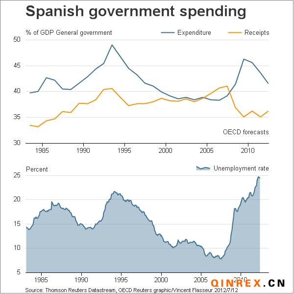 路透7月11日---受經濟衰退困擾的西班牙周三公布了新緊縮措施,旨在2014年前削減公共赤字650億歐元.西班牙首相拉霍伊迫于歐盟壓力,努力避免尋求國家層面上的救助.