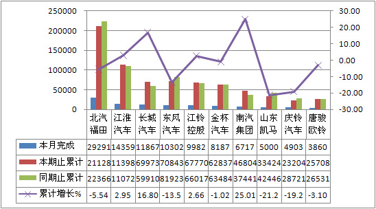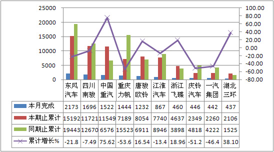 2012年6月貨車生產186336輛,累計生產1343921輛,銷售195109輛,累計銷售1384721輛,同比累計增長分別為-5.81%和-6.96%。