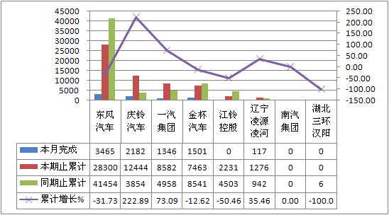 2012年6月貨車非完整車輛生產31458輛,累計生產245192輛,銷售38713輛,累計銷售254678輛,同比累計增長分別為-26.86%和-28.83%。