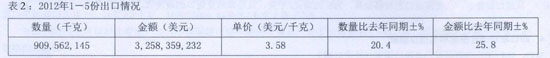 根據(jù)表2內(nèi)容,今年前5個月,國內(nèi)卡客車胎的出口依然保持了20.4%的同比增幅,大于去年全年的平均增幅,但今年其1-5月的出口價格與去年全年的平均出口價格持平,為3.58美元/千克。