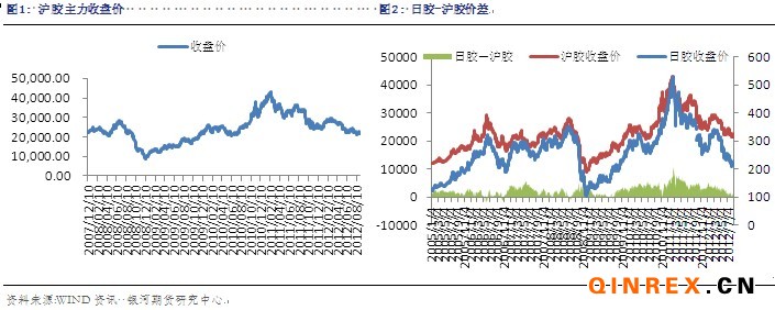 上周美聯儲發布會議紀要以來,市場對QE3的預期再次升溫,使得周一滬膠跳空高開。周二公布的8月美國消費者信心指數為60.6,降至去年11月以來的最低點,暗示整體經濟仍然較為脆弱; 而6月標準普爾/Case-Shiller房價指數經季節調整后較前月上升0.9%,美國6月房價連續第五個月攀升,也可看出美國房地產市場確實實在復蘇中。