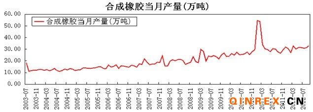 9月份,我國合成橡膠進口量為121,589噸,同比下降1.6%(去年同期123,573噸),環(huán)比(上月111,823噸)增長8.7%。1-9月,我國累計進口合成橡膠1,071,855噸,較去年同期的1,091,098噸下降1.8%。從青島橡膠保稅區(qū)庫存來看,合成橡膠的庫存緩慢爬升,暗示的下游的需求較為疲軟。9月份,我國合成橡膠產(chǎn)量為32.72萬噸,環(huán)比增加4.8%,同比增加17.7%。而9月底至10月底有部分合成橡膠裝置停產(chǎn)檢修預計,10月份的合成橡膠產(chǎn)量將減少。