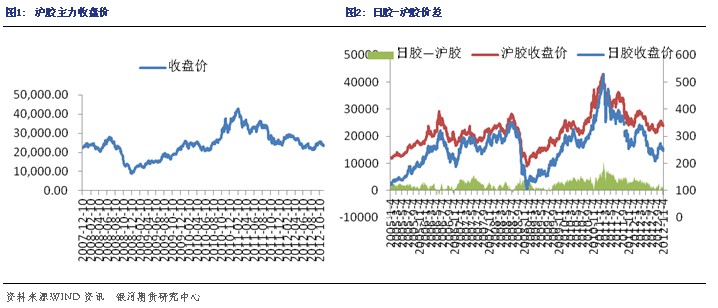 外盤情況:本周日膠一度下挫至近兩個(gè)月新低,而后今日跳漲,但是獲利了結(jié)限制了漲幅。