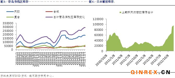 外盤情況:受日元走軟支撐,本周日膠繼續保持強勁漲勢。盡管周中受到美國財政懸崖的憂慮打壓價格,但是仍然保持連續的漲勢,周中一度觸及七個半月高位。