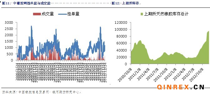 本周,中橡網全乳膠現貨掛單量較大,成交量較上周有所減少,掛單平均價在24300元/噸上下。上期所天膠庫存繼續小幅增加,截止12月21日,庫存總計為97697噸,12月14日總庫存為95927噸。