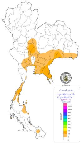 下圖為過去一周泰國各地降水量分布: