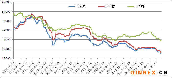 圖2:天膠與合成膠價格走勢對比
