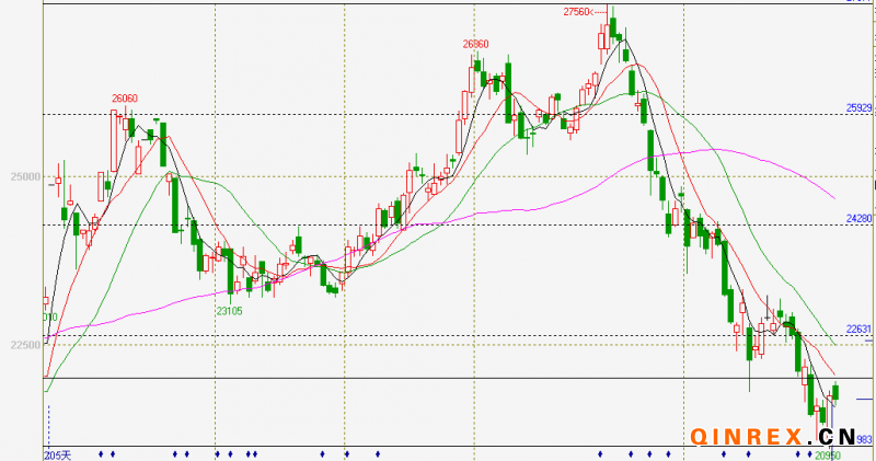 綜合論述:在日元貶值的推動下,日膠指數繼續上行,但滬膠在22000點關口承壓回落,日內1309合約沖高21950點,尾盤收于21680點,日增倉1萬多手。后市關注22000點附近的爭奪,若膠價能企穩22000點上方,則滬膠自2月中旬以來的空頭氛圍有望逐漸淡去。支撐位21000點;壓力位22000點,20日均線。