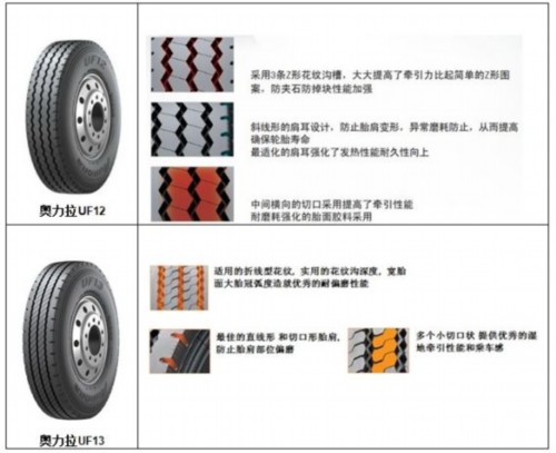 據悉,奧力拉UF12和UF13是兩款適用于中長途鋪裝路面的高性能全輪位輪胎,分別適用于卡車/貨車和拖車/油罐車等定載車輛。通過采用獨特的花紋和胎肩設計,UF12和UF13不僅在多樣化的路況及環境下能夠發揮最佳操控性,而且有效防止胎肩變形及異常磨損,從而提高使用壽命。