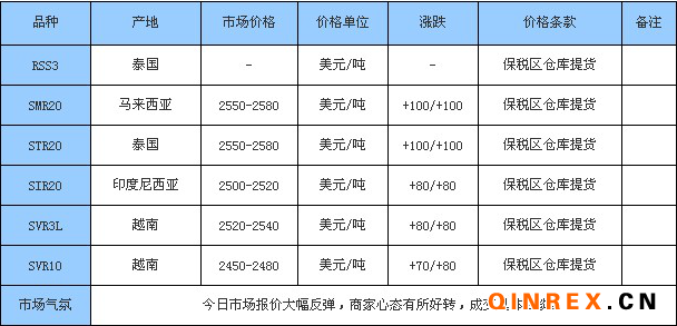 進口膠市場報價走漲,期貨市場反彈改善市場心態,實單詢價為主。5月3日: