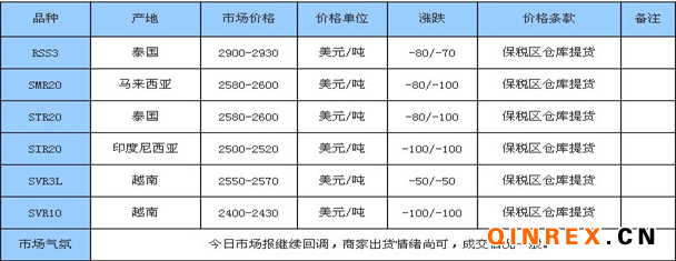 浙江地區天然橡膠市場,云南國營全乳膠市場報價在20100元/噸左右,海南國營全乳膠市場報價在19900元/噸左右,云南標二市場報價在18800元/噸左右,越南3L含17%稅在19900元/噸左右,泰三煙片市場含17%稅在20100元/噸左右,貿易商報盤小跌,下游即用即買,市場成交量有限。浙江地區順丁橡膠市場報價盤整,部分大慶、錦州、高橋順丁報價在14300-14500元/噸附近;藍德順丁報價在14300元/噸附近,福橡順丁在13400-13500元/噸附近,價格僅供參考,實際一單一談。