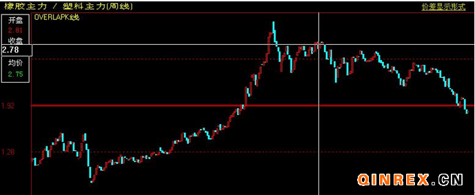今日(2013-6-4)滬膠主力1309開于18985元/噸,繼續沖高,今日最高漲至19270元/噸,最低跌至18940元/噸,最終收于19155元/噸,較上一交易日上漲1.35%,成交較量減少至65.01萬手,持倉增加至18.45萬手。