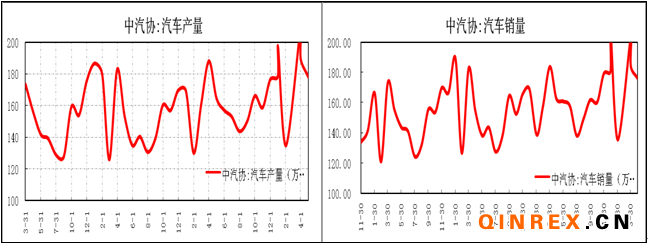 中汽協最新數據顯示,2013年5月汽車產銷形勢總體穩定,當月產銷環比繼續下降,同比增速依然明顯。5月汽車生產178.05萬輛,同比增長13%;5月汽車銷售176.15萬輛,同比增長9.6%。其中:5月汽車產銷的環比都出現了下滑,其主要原因是因為汽車市場開始步入了銷售的淡季。因此預計在6至8月份汽車的產銷數據將出現一定程度的回落。