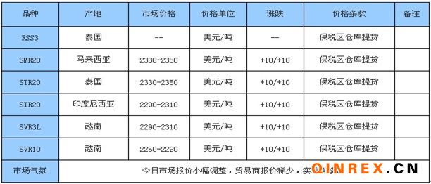 浙江地區天然橡膠市場,云南國營全乳膠市場報價在18100元/噸左右,海南國營全乳膠市場報價在18000元/噸左右,云南標二市場報價在16800元/噸左右,越南3L含13%稅在17600元/噸左右,泰三煙片市場含17%稅在18300元/噸左右,貿易商出貨不多,下游即用即買,市場成交量有限。浙江地區順丁橡膠市場報價窄盤整理,大慶、高橋順丁報價12800-12900元/噸附近,福橡順丁報價在12300元/噸,價格僅供參考,商家多在等待銷售公司政策指引,實際一單一談。