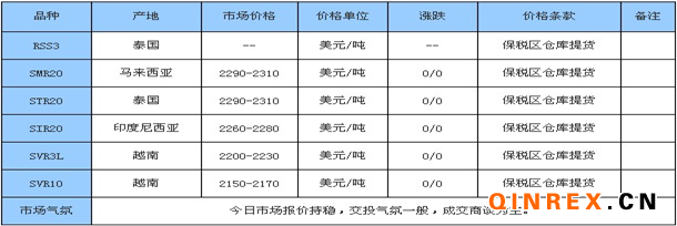 泰國(guó)原料市場(chǎng):今日泰國(guó)USS橡膠現(xiàn)貨價(jià)格周一下滑,報(bào)74.49-74.89每公斤泰銖,上周五報(bào)74.90-75.59泰銖。