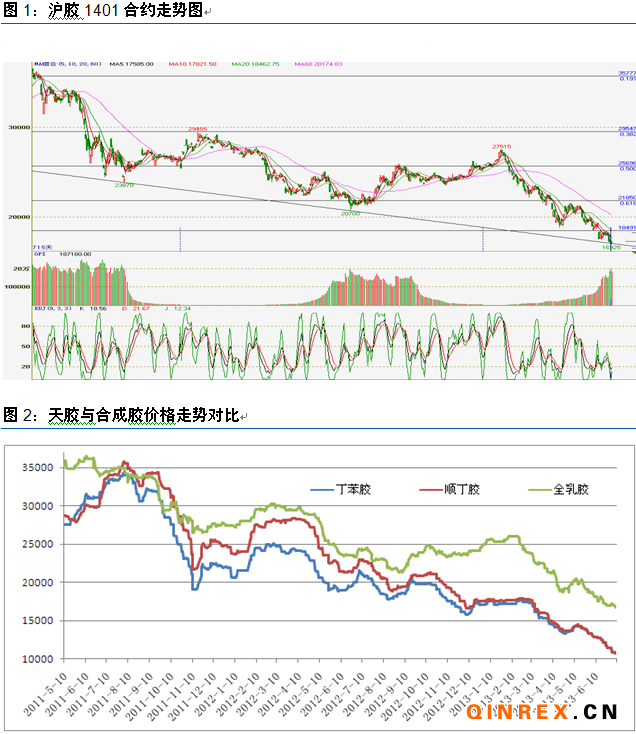 受伯南克講話傳遞的鴿派信息影響,美元指數隔夜應聲大幅下探,國際金價大漲。而國內金融市場日內亦是一片欣欣向榮的景象,股指高開高走,強勢上漲,板塊方面亦是全線飚紅。商品市場亦是幾乎普漲,滬膠1401合約午后隨著空頭的平倉離場,價格上行以18000點的漲停價封盤。在今日的早評中我們也已經提示了滬膠今日將會上漲。從持倉來看,今日主力合約持倉量銳減了20000多手,應是由于空頭主動平倉離場,規避反彈的風險。短線來看,膠價有繼續反彈的需求,關注上方壓力位20日線、18800點。另外,期現價差已經再度拉開至1200點,為期現套利提供了空間。