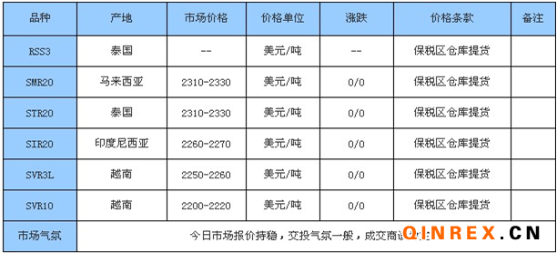 上海地區天然橡膠市場,云南國營全乳膠市場報價在17500元/噸左右,海南國營全乳膠市場報價在17100-17400元/噸左右,云南標二市場報價在15700-15900元/噸左右,越南3L含17%稅報價在17100-17300元/噸左右,泰三煙片含17%稅報價在17600元/噸左右,貿易商報價小幅調整,價格高低不等,下游買入謹慎,市場成交需商談。上海地區順丁市場報價重心回落,少量大慶、齊魯順丁參考價格11000-11200元/噸附近,高橋順丁參考價格11500-11600元/噸附近,茂名順丁參考報價10600元/噸附近,今日出貨意向增強,實單成交確定。