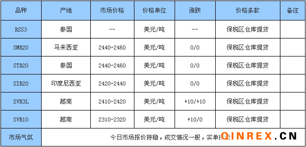 上海地區(qū)天然橡膠市場(chǎng),云南國營全乳膠市場(chǎng)報(bào)價(jià)在19000元/噸左右,海南國營全乳膠市場(chǎng)報(bào)價(jià)在18500-18600元/噸左右,云南標(biāo)二市場(chǎng)報(bào)價(jià)在16800元/噸左右,越南3L含17%稅市場(chǎng)報(bào)價(jià)在17700-18000元/噸左右,泰三煙片含17%稅報(bào)價(jià)在18700元/噸左右,貿(mào)易商報(bào)價(jià)小幅調(diào)整,下游買入謹(jǐn)慎,市場(chǎng)成交需商談。上海地區(qū)順丁市場(chǎng)報(bào)價(jià)疲軟,少量藍(lán)德、獨(dú)山子順丁參考報(bào)價(jià)12300-12500元/噸附近,零星高橋順丁參考價(jià)格12700-12800元/噸附近,報(bào)價(jià)僅供參考,高價(jià)成交困難,實(shí)單成交確定。