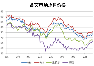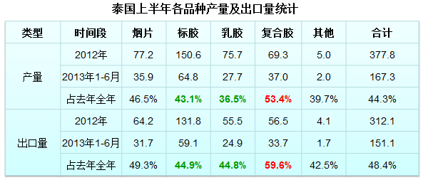 復合膠成為上半年供應的亮點。1-6月復合膠產量為37萬噸,占整個產量的比重提高至22.1%,而去年上述比重為18.3%。復合膠的大量增產,也是源于中國需求的激增。1-6月中國共進口了80.15萬噸復合膠,較去年同期增43.8%;其中來自泰國的復合膠達到40萬噸,較去年同期增加56.8%。復合膠一部分分流了標膠的產量,上半年泰國標膠產量為150.6萬噸,較去年同期穩中有降。