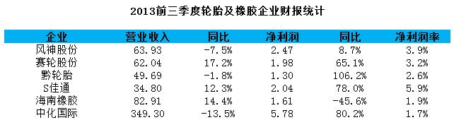 海膠和中化兩家原材料企業(yè)盈利水平相對較弱。海膠三季度盈利明顯萎縮,令凈利潤率叢前半年的2.6%下滑至前三季度的1.9%。中化通過大量的收購已經(jīng)完成從橡膠貿(mào)易公司向精細(xì)化工領(lǐng)域轉(zhuǎn)型的戰(zhàn)略目標(biāo),前三季度銷售收入下滑,凈利潤率與海膠基本持平。