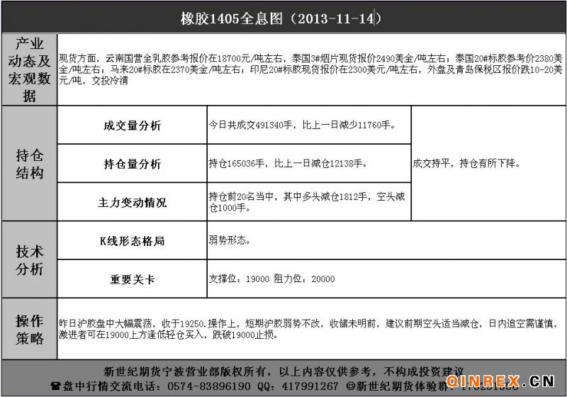 天膠早評 20131114
