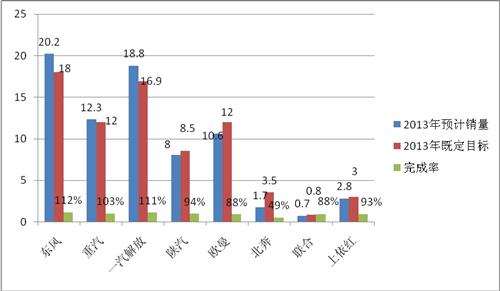 各企業(yè)2013年銷量和2013年目標(biāo)對比圖(單位:萬輛)