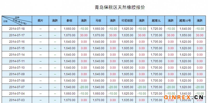 青島保稅區天然橡膠市場行情一周綜述(7.14-7.18)
