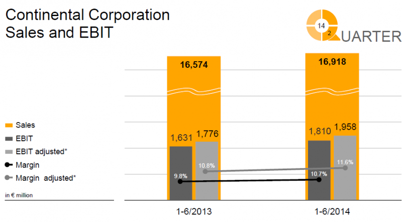德國漢諾威當地時間2014年7月31日,馬牌(大陸)公司發布其2014半年財務報告;凈利潤增長14.2%,銷售收入增加2.1%;稅前營運收入增加得益于影響原材料成本下降以及營收增加。