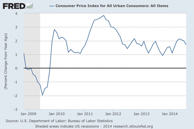 不過,量化寬松項目并非沒有爭議的——有資產采購可能引發通貨膨脹以及貨幣貶值的擔憂,不過這些判斷被證明可能是過慮了,消費物價通貨膨脹目前還是低于2%的: