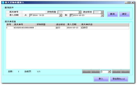 2、轉(zhuǎn)出企業(yè)在貨物來源錄入模塊查詢轉(zhuǎn)出報(bào)關(guān)單: