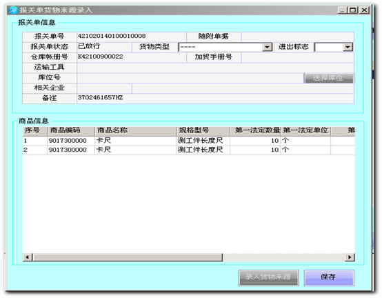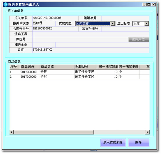 4、點(diǎn)擊錄入貨物來源,錄入貨物來源。