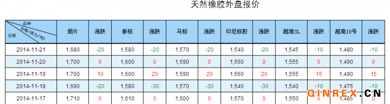 ●QinRex據(jù)吉隆坡11月20日消息,三國橡膠理事會(ITRC)預計將在18個月內(nèi)建立地區(qū)性橡膠市場,作為穩(wěn)定膠價的補救措施之一。該決定是在馬來西亞召開的2014年部長級會議上做出的。