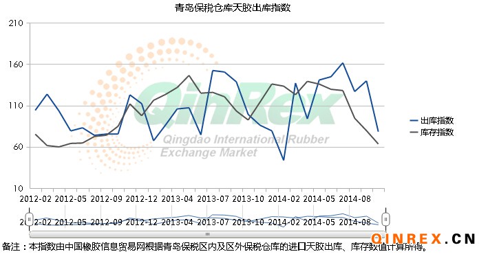 中國橡膠信息貿易網“QinRex數據決策系統”于2014年12月29日,新增青島保稅倉庫天膠出庫指數,本指數由中國橡膠信息貿易網根據監測青島保稅區內及區外保稅倉庫的進口天膠出庫、庫存數值計算所得。該內容位于“數據統計—橡膠數據—青島保稅區”欄目下。