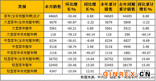 上表可見,客車市場所有細分車 型1月份銷量環比上月全部出現下滑,下滑最嚴重的是大型客車市場。與去年同期相比,客車市場雖有8.88%的增幅,具體到細分市場卻并不好看,大型客車 (含非完整車輛)市場和中型客車(含非完整車輛)市場都出現下滑,這個8.88%的增幅很大程度上是由客車市場份額最大的輕型客車貢獻的。