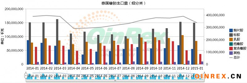 中國橡膠信息貿易網“QinRex數據決策系統”于2015年3月30日,新增泰國橡膠出口量(細分類)數據庫內容,分類包含煙片膠、標膠、乳膠、縐橡膠、復合橡膠、其他天然橡膠。