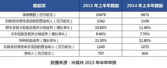 核心提示:近日,輪胎巨頭米其林發(fā)布了2015年上半年年報(bào),根據(jù)年報(bào)顯示,上半年,米其林凈銷售額為104.79億歐元,比同期增長8.33%,而營...