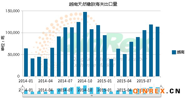 2015年1-9月越南橡膠出口量為750,433噸,同比增8.2%。